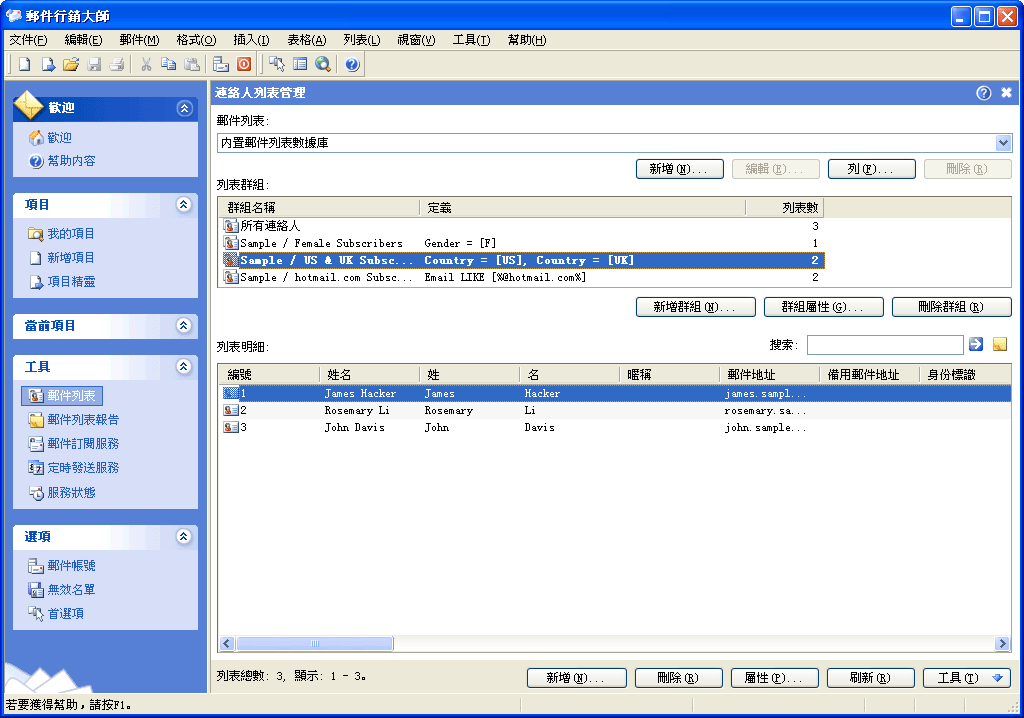 默認情況下,郵件行銷大師已經內置了支持百萬數量級的郵件列表資料庫。