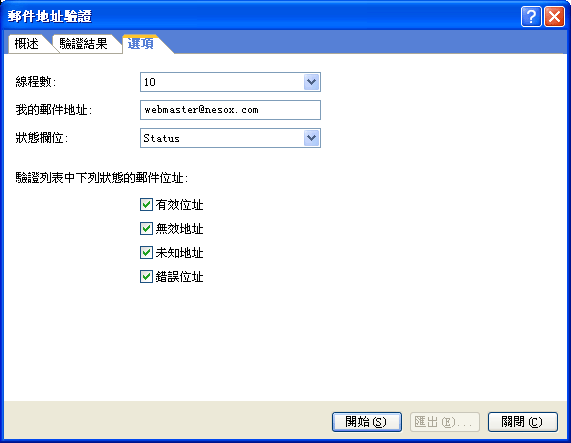 線程數 與郵件服務器的連接數,線程數越多,驗證速度越快。