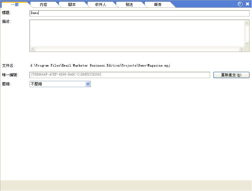 郵件行銷大師同時提供了更為人性化的項目響導功能幫助您創建項目。要開始項目響導,請啟動程式,然後點擊檔案功能表,選擇項目響導。