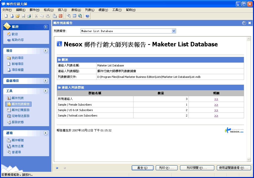 郵件行銷大師為每個郵件列表提供統計報告。郵件列表報告提供聯系人的各種統計情況。