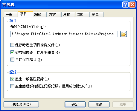 項目檔案的默認保存位置,默認為C:\Program Files\Email Marketer\Projects。