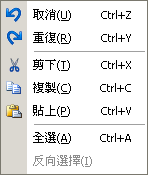 您可以通過編輯功能表進行常用的文本操作,例如復制,粘貼,撤銷,查找等。