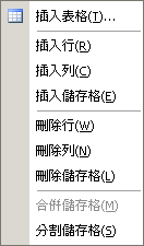 插入表格 插入一個表格。